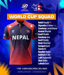 पुष २२, काठमाडौं । आईसीसी टी-२० विश्वकप क्रीकेट खेल्ने नेपाली टोलीको घोषणा भएको छ ।